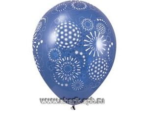 Высококачественный шар из натурального латекса. Ассорти из 10-12 цветов (в случайном соотношении), одного тип - кристалл - яркий, прозрачный шар. Шары с пятисторонним - круговая печать, крупным шелкографическим рисунком "Фейерверк".