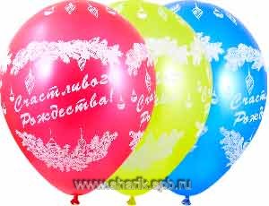 Высококачественный шар из натурального латекса. Ассорти из 10-12 цветов (в случайном соотношении), одного тип - металлик - шар с металлическим блеском. Шары с пятисторонним - круговая печать, шелкографическим рисунком на тему "Счастливого Рождества".