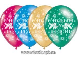 Высококачественный шар из натурального латекса. Ассорти из 10-12 цветов в случайном соотношении), одного типа - пастель - матовый оттенок цвета. Шары с пятисторонним - круговая печать, шелкографическим рисунком на тему "Новый год"