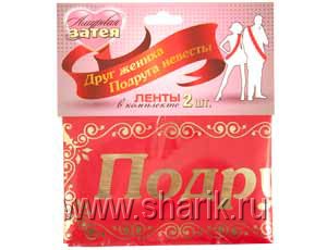 Комплект лент "Друг жениха" и "Подруга невесты". Материал: атлас, золотое тиснение. Состав: 100% полиэстер.