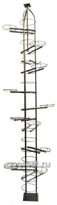 Подставка под цветы распорная на 12 цв. С лампой 2,63-2,7 м (Круглая), лампа в комплекте , Максимальный нижний диаметр горшка 17,5 см ;цвет: золото антик, золото, серебро;