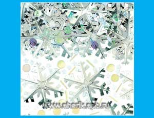 Мелко нарезанный фольгированный пластик в форме больших снежинок разных форм.