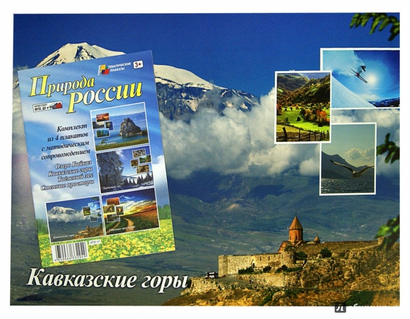 213157 Комплект плакатов "Природа России" (4 плаката:Байкал,Кавказ,Таежный лес,степь с метод.сопров)