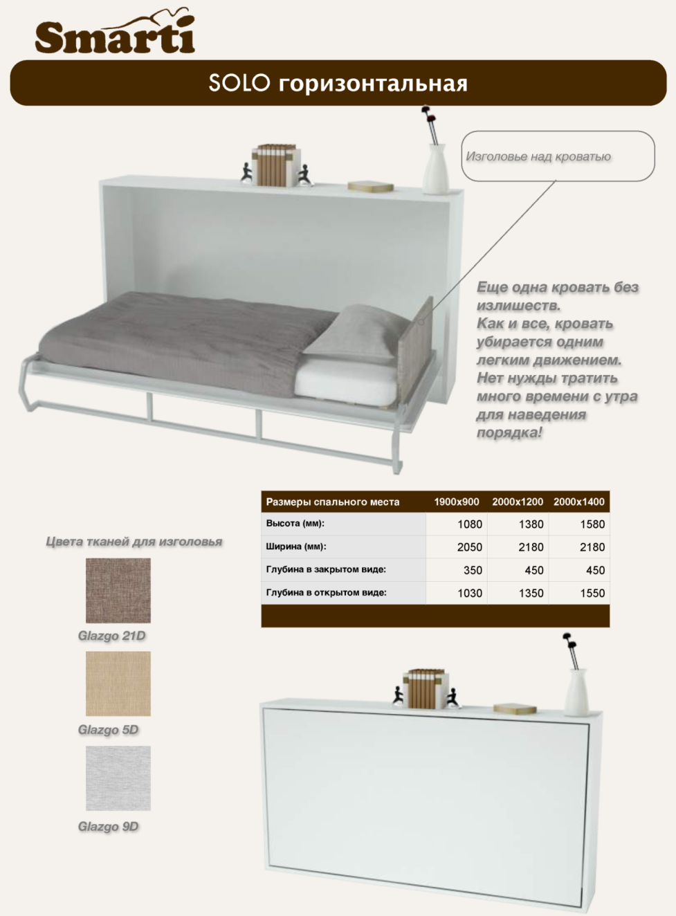 В закрытом виде кровать принимает вид коробки, которая, к примеру, может служить полочкой для книг или цветов.
