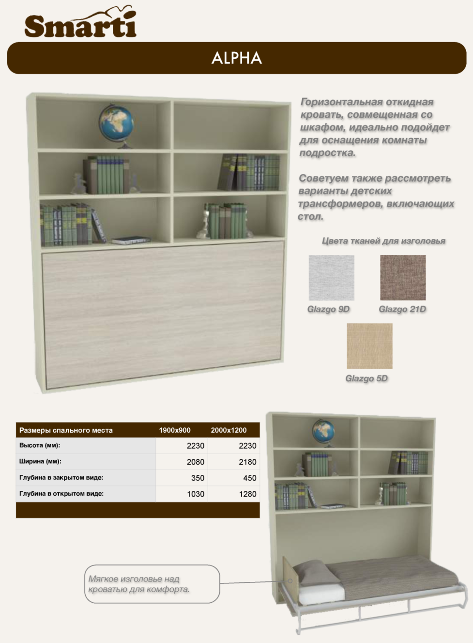 Мягкое и комфортное спальное место в любой момент можно спрятать в шкафу, освободим тем самым пару квадратных метров. А большой шкаф, включающий в себя шесть полок, поместит всё, что необходимо.
