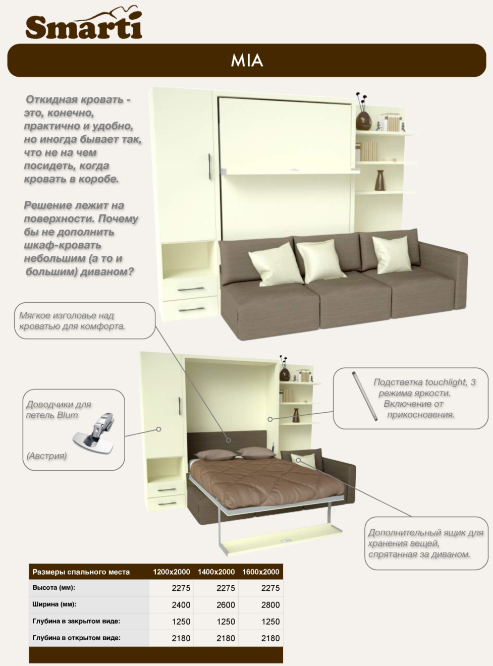 Кровать трансформер очень удобна и практична. Ночью она служит спальным местом, а днём убирается и превращается в удобный диван.