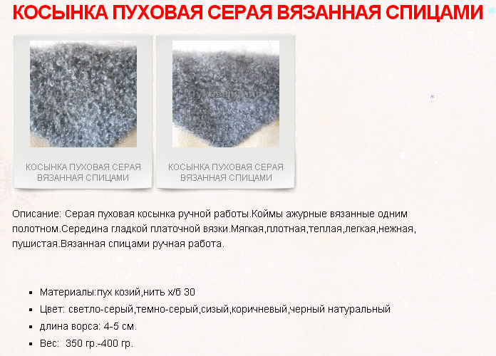 Материалы:пух козий,нить х/б 30