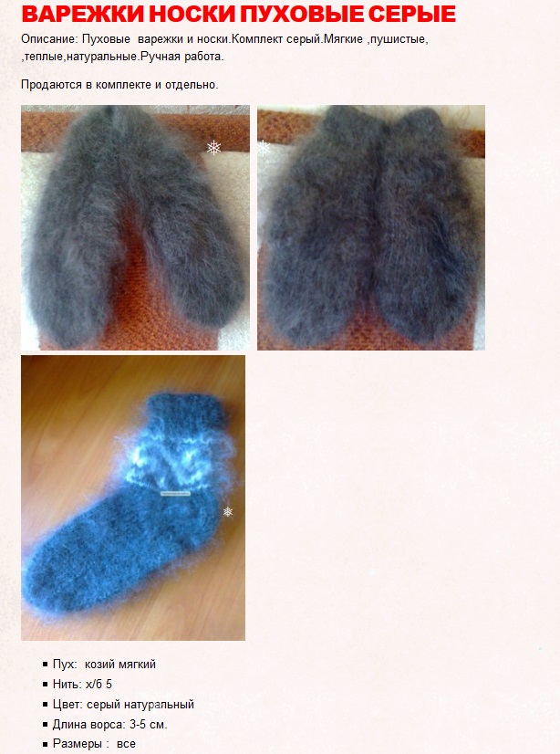 Носки пуховые серые(ручная,спицы) 36,37,38,39,40,41,42,43
